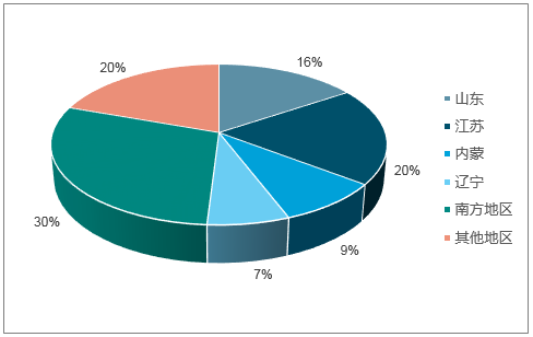 鎳鐵作為鎳礦的替代品,具有提高鋼的抗彎強(qiáng)度和硬度,并降低不銹鋼冶煉成本的優(yōu)點(diǎn)。在我國,鎳鐵行業(yè)起步較晚,但發(fā)展迅速,2012年我國鎳鐵產(chǎn)能達(dá)到800萬噸,并在往后幾年快速擴(kuò)張,在2017年鎳鐵產(chǎn)能達(dá)4538.17萬噸,在這6年間年均增長率達(dá)42.14%。產(chǎn)能的分布主要在江蘇、山東及南方地區(qū),分別占比20%、16%和30%。